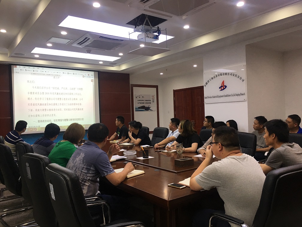 6月20日下午,安慶分公司黨支部召開了“講忠誠、嚴(yán)紀(jì)律、立政德”專題警示教育動(dòng)員擴(kuò)大會(huì)議,分公司全體員工參加動(dòng)員會(huì)。