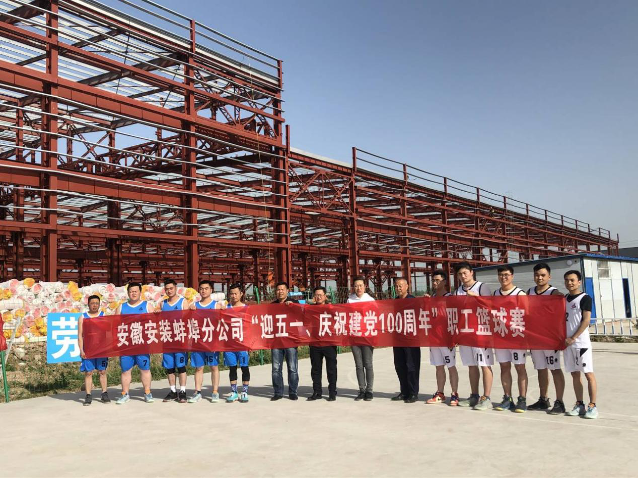 為喜迎五一,慶祝中國共產(chǎn)黨成立100周年,唱響“勞動最光榮”的主旋律,豐富職工業(yè)余文化生活,營造和諧向上、團(tuán)結(jié)奮進(jìn)的企業(yè)文化氛圍,4月29日下午由蚌埠分公司黨支部舉辦的“迎五一 慶祝建黨100周年”職工籃球友誼賽在蚌埠臨港產(chǎn)業(yè)園項目部室外籃球場火熱舉行。本次籃球賽兩支球隊的隊員全部為分公司各在建項目員工,分公司班子成員和部分員工觀看現(xiàn)場比賽。