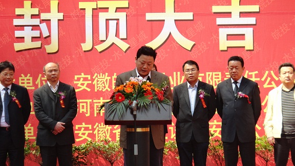 皖投置業(yè)總經(jīng)理耿文女士在慶典上發(fā)表講話(huà),對(duì)我公司全體人員的工作給予了充分的肯定,并表示皖投水岸星城一期三標(biāo)段工程的順利封頂,奠定了皖投置業(yè)與省安裝公司成為長(zhǎng)期戰(zhàn)略合作伙伴的基礎(chǔ)。