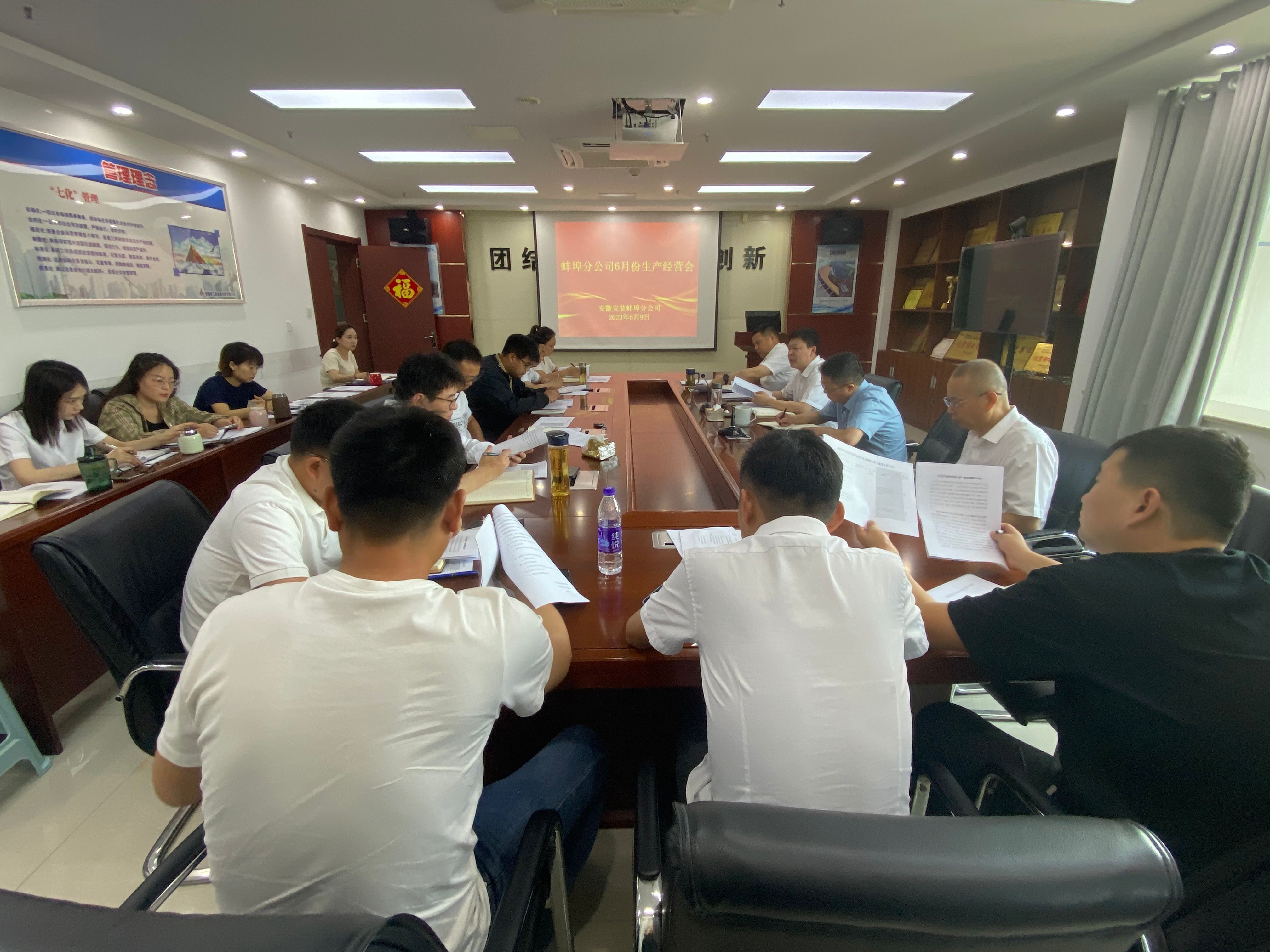 6月9日上午,蚌埠分公司組織召開6月份生產(chǎn)經(jīng)營會,分公司領(lǐng)導(dǎo)班子成員、所屬各項目部、機關(guān)各部門負責(zé)人及工程管理部全體員工參加會議,會議由分公司副經(jīng)理郭洋主持。