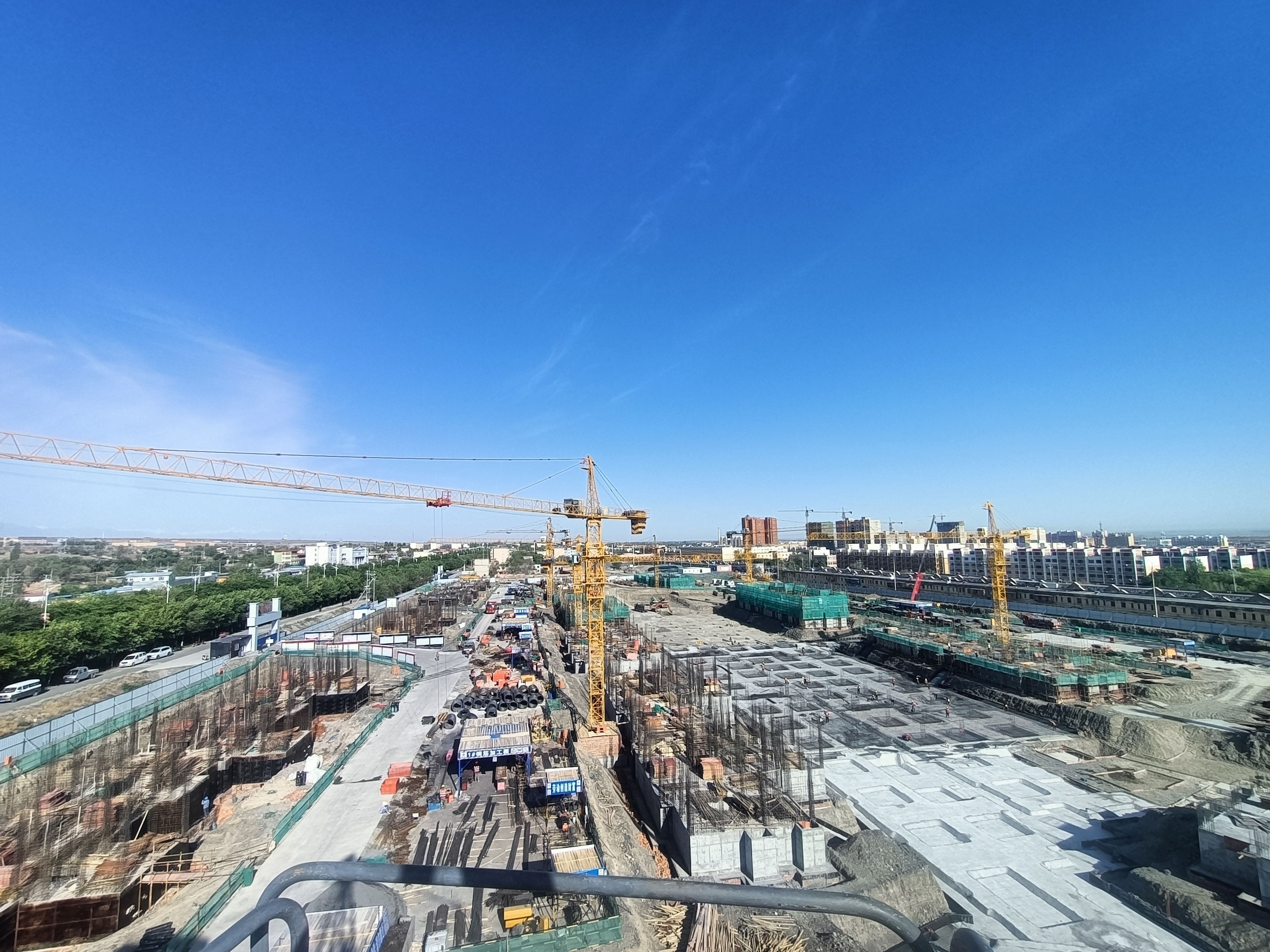 烏蘇市南苑新城項目本項目占地面積118047.31㎡,項目新建34棟住宅樓,1466套住宅,平均層數(shù)10層,總建筑面積222500.41㎡。其中:地上住宅總面積185360㎡,配套商服1209㎡,配套綜合樓1890㎡,日間照料中心1758㎡,社區(qū)物業(yè)用房1869㎡,地下室建筑面積18903㎡,地下車庫及人防建筑面積11511.41㎡,綠化面積42000㎡,配套建設(shè)及附屬工程。截至目前,A區(qū)1,2,3,4基礎(chǔ)土方開挖,筏板防水施工,筏板鋼筋綁扎已完成,6,8,12,13,14,15,16,17,18,20,21,22,23,24#正負(fù)零以下結(jié)構(gòu)工程施工完畢;A6,12,21,22,23,24#基礎(chǔ)回填已完畢,一層外架施工已完成70%,一層結(jié)構(gòu)已完成60%;人防地庫土方已開挖至消防水池,總體土方已開挖完成90%,地庫31-38交A-1至A-8軸鋼筋綁扎完成,16-26軸交A-K軸鋼筋綁扎完畢,木工筏板加固模板支護(hù)工程已完成50%;B區(qū)換熱站,3,4#土方工程已開挖至基底預(yù)留30CM。