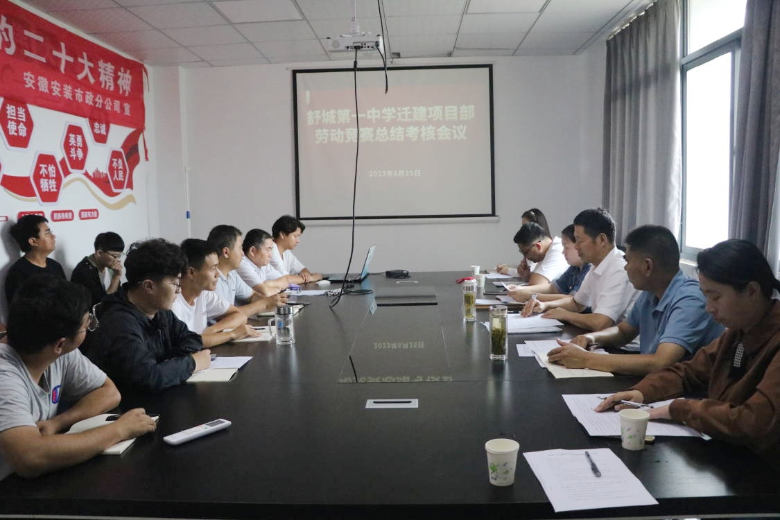 6月25日,市政分公司黨支部書記胡迎東、副經(jīng)理張漢軍赴舒城一中遷建工程項目部開展項目勞動競賽考核工作。項目部全體管理人員及勞務(wù)班組代表參加。