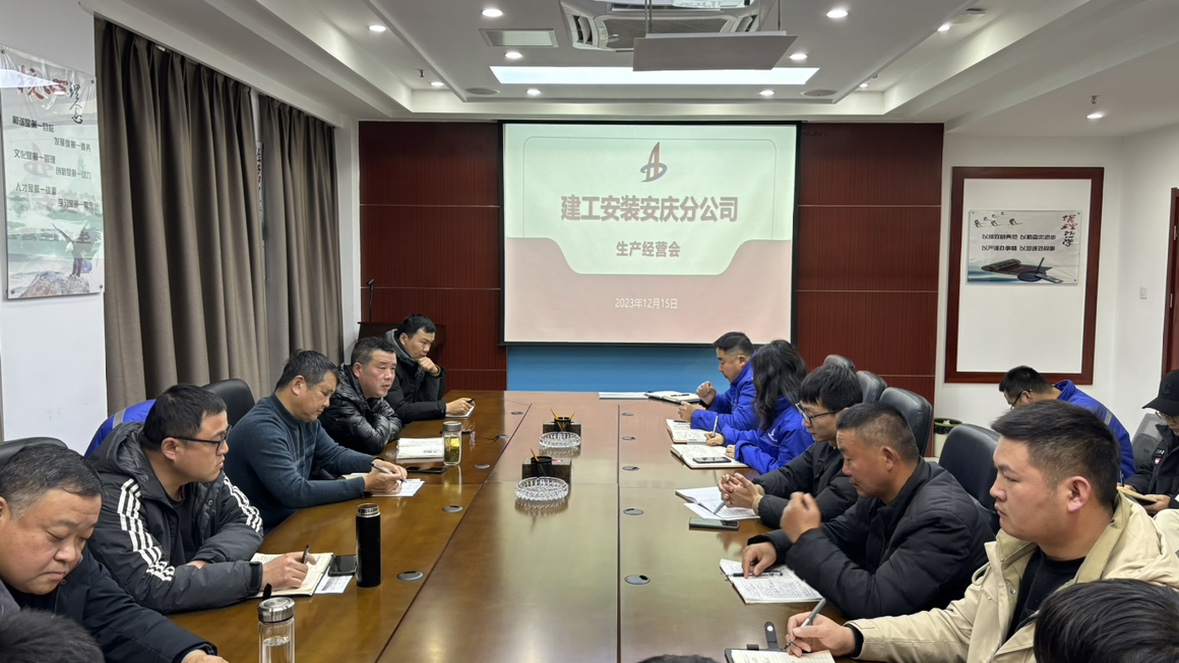 2023年12月15日,安慶分公司召開12月份生產(chǎn)經(jīng)營會,分公司領(lǐng)導(dǎo)班子、部門負責人、項目經(jīng)理及技術(shù)骨干參會,會議由分公司副經(jīng)理方斌主持。
