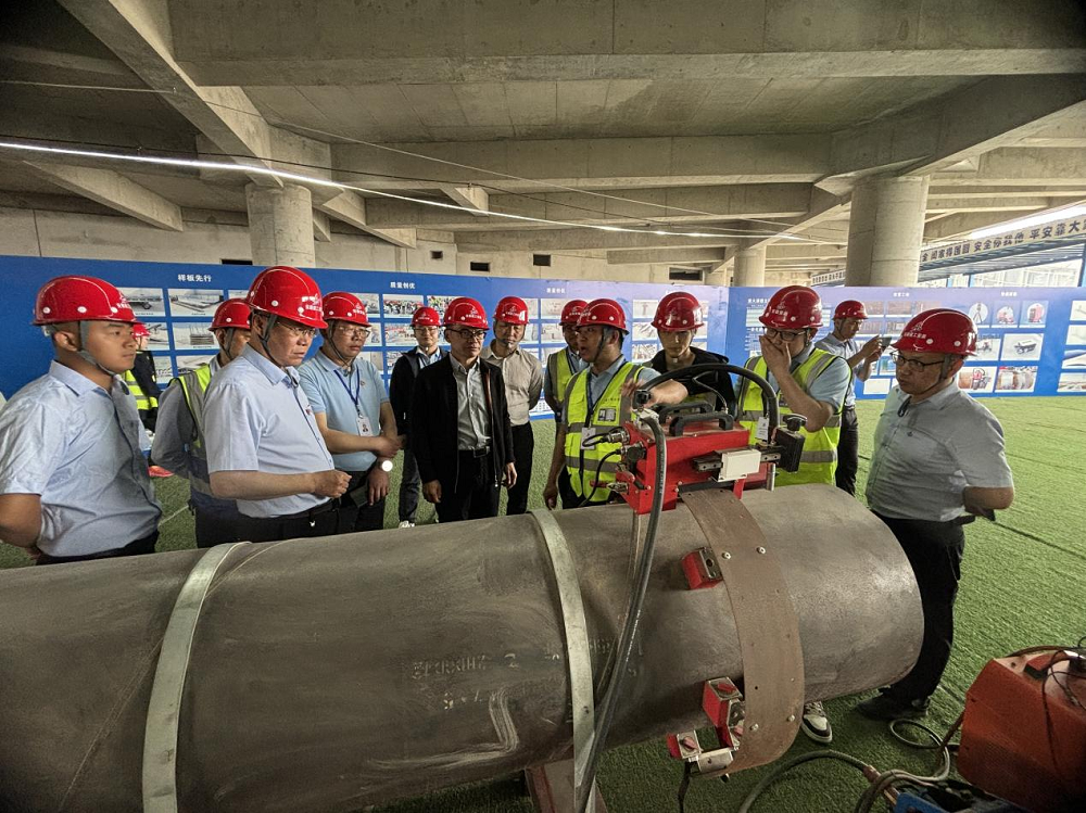隨后一行人前往項目施工現(xiàn)場觀摩,雙方對現(xiàn)場的協(xié)調(diào)管理、BIM管綜布局、多工種交叉作業(yè)等提出了各自的經(jīng)驗和見解,王永利一行特別對項目上采用的焊接機器人技術(shù)表示了贊賞。