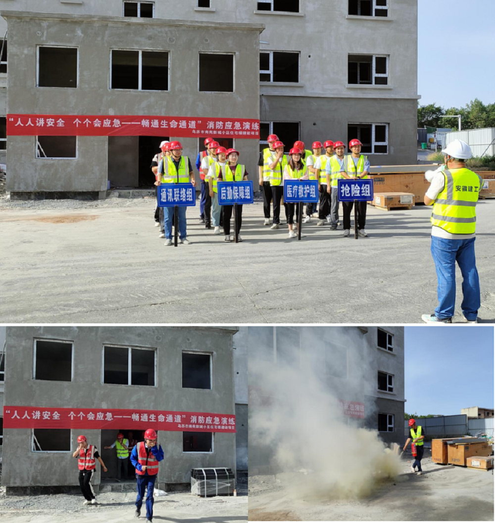 為深入貫徹“人民至上、生命至上”的安全管理理念,提升施工現(xiàn)場(chǎng)人員的消防意識(shí)和應(yīng)急處置能力,切實(shí)踐行“人人講安全、個(gè)個(gè)會(huì)應(yīng)急---暢通生命通道”的安全生產(chǎn)月主題,6月26日,建工安裝烏蘇市南苑新城小區(qū)住宅樓建設(shè)項(xiàng)目組織開展了消防應(yīng)急演練。