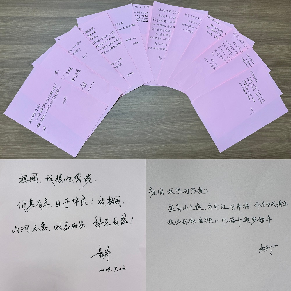 你看,這一句句真摯樸實的祝福,真情流露出我們對祖國的無比熱愛和深情告白:“七十五年,承載了我們中華兒女無數(shù)的光榮與夢想;向著明天,讓我們用雙手創(chuàng)造更美好的未來?!薄坝幸环N花,叫向日葵,永遠向著太陽生長;此刻,我愿化身一朵“向日葵”,追隨我心中的“太陽”——我的祖國,祝您欣欣向榮、蒸蒸日上!”“我們是祖國未來的接班人,時刻準(zhǔn)備為中華民族的偉大騰飛而努力奮斗!”……