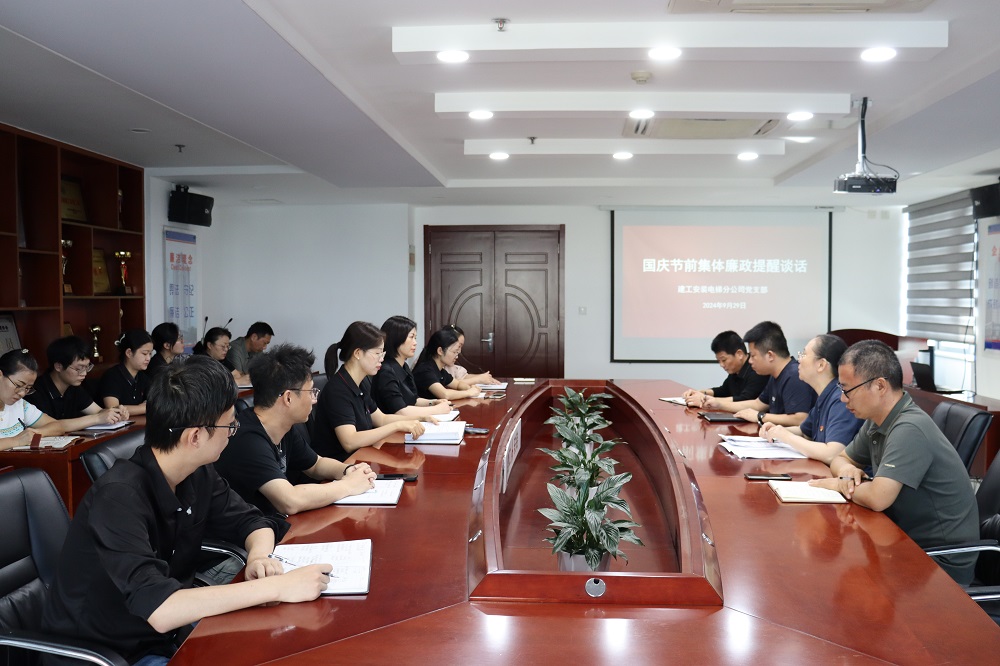 “國慶”臨近,為進一步嚴明紀律要求,積極營造風(fēng)清氣正的節(jié)日氛圍, 建工安裝電梯分公司黨支部于9月29日上午開展節(jié)前集體廉政提醒談話。
