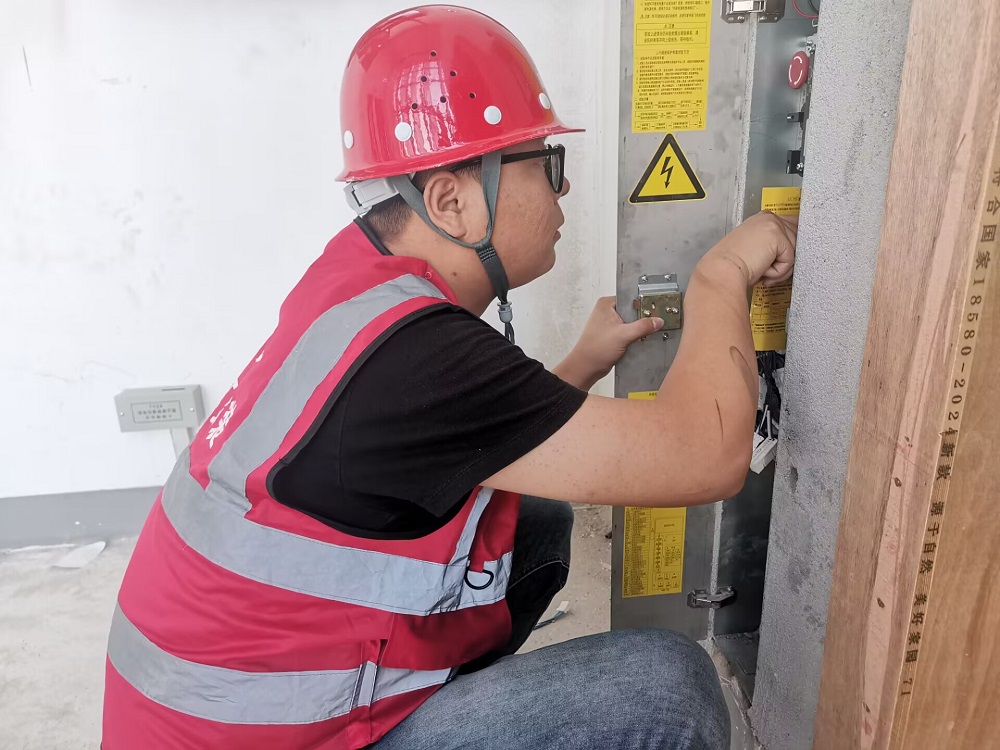 中國蚌埠傳感谷(寧波蚌埠微電子產(chǎn)業(yè)園)項目,技術員,鄭繼昊,正在檢查電梯控制柜操作系統(tǒng)。奮進正當時,我為祖國建設出力,以實際行動建設精品工程。我在項目堅守,我為祖國慶生。