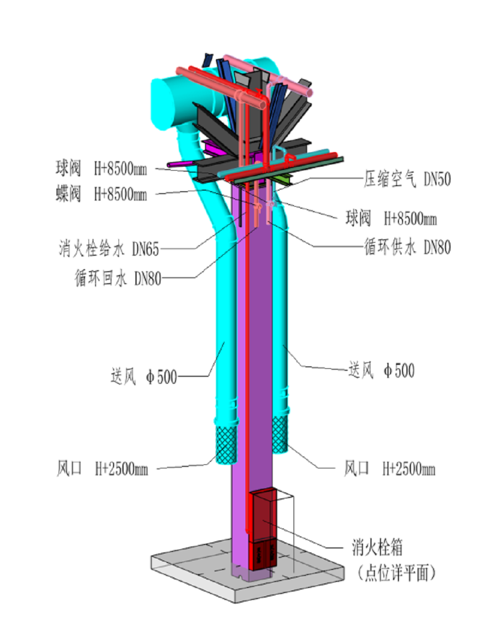 在項目初期,BIM團隊就深入?yún)⑴c,對廠區(qū)內(nèi)部的管線走向、設(shè)備布局進行模擬和深化。通過識別沖突點、優(yōu)化布置,避免現(xiàn)場返工;提前深化機電支吊架方案,確保大管徑支吊架與鋼構(gòu)同步安裝;針對復(fù)雜節(jié)點建立虛擬樣板模型。此外,基于BIM模型合理安排施工工序,提前預(yù)判問題,避免工序干涉。