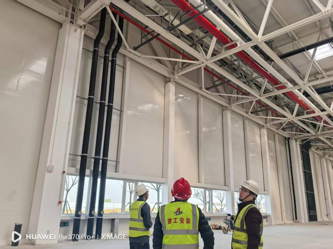自一季度以來,項(xiàng)目部以“2025開局即決戰(zhàn)”的昂揚(yáng)斗志,迅速掀起“大干快上”施工熱潮。對(duì)各車間、各系統(tǒng)剩余工程量展開全面梳理統(tǒng)計(jì),同時(shí)針對(duì)剩余工程量堅(jiān)持每日召開專題會(huì),以倒排計(jì)劃為“發(fā)令槍”,對(duì)照時(shí)間節(jié)點(diǎn)要求各班組加班加點(diǎn)、不折不扣完成。截至發(fā)稿,車間一大面積施工基本完成,形象進(jìn)度完成約96%;車間二形象進(jìn)度完成約90%;車間四形象進(jìn)度完成約92%;站房一各設(shè)備管道基本安裝完成,正在調(diào)試中,形象進(jìn)度完成約90%。目前,各車間工藝生產(chǎn)均已進(jìn)場(chǎng),燃?xì)忮仩t點(diǎn)火成功、空壓站完成試運(yùn)行、工藝24h冷凍水、恒溫恒濕空調(diào)均已投入使用;各車間工藝區(qū)送電已到位、供水完成。